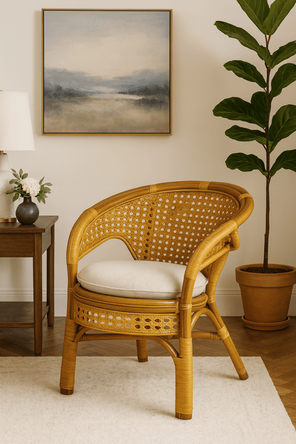 Natural rattan frame & handwoven rattan webbing